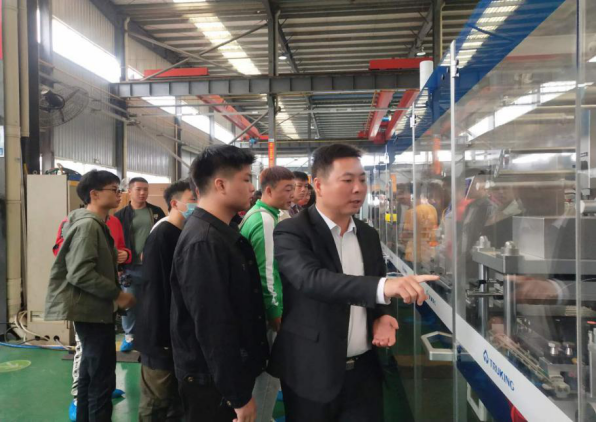 随后,全体师生由解说员引导,参观了智能制造车间。经解说员介绍,大家对智能制造车间的运行模式,模具制造、机电产品组装等相关技术,企业人才需求有了初步认识。