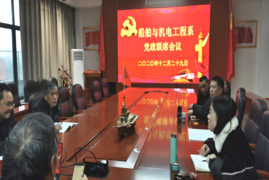 12月29日,船舶与机电工程系在305会议室组织召开党政联席会议,会议由船舶与机电工程系主任徐晓昂主持,系副主任曾庆军、刘艳,机电教研室主任崔璨,船舶教研室主任刘屈钱,模具教研室主任唐波,创新工作室主任邓剑锋,船舶设计院院长高征兵,学工办主任沙之舟参加会议。