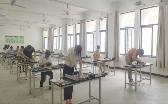 上午9时30分,曾庆军在船舶大楼305会议室对参与技能操作考核的评委进行动员,就考核流程、注意事项与各位评委老师进行了详细说明,并要求考核过程必须公平公正、认真严谨。随后,曾庆军在305会议室对全体应聘人员致欢迎词,并讲解实操考核须知。教务办对应聘人员进行考前分组、身份信息核对、签到、及工位号抽取等工作,并对全体应聘人员的通讯物品进行集中管理。10时30分,应聘人员分焊接专业组、机电专业组、技师组分别在焊接实训室与机电实训室进行技能操作考核。