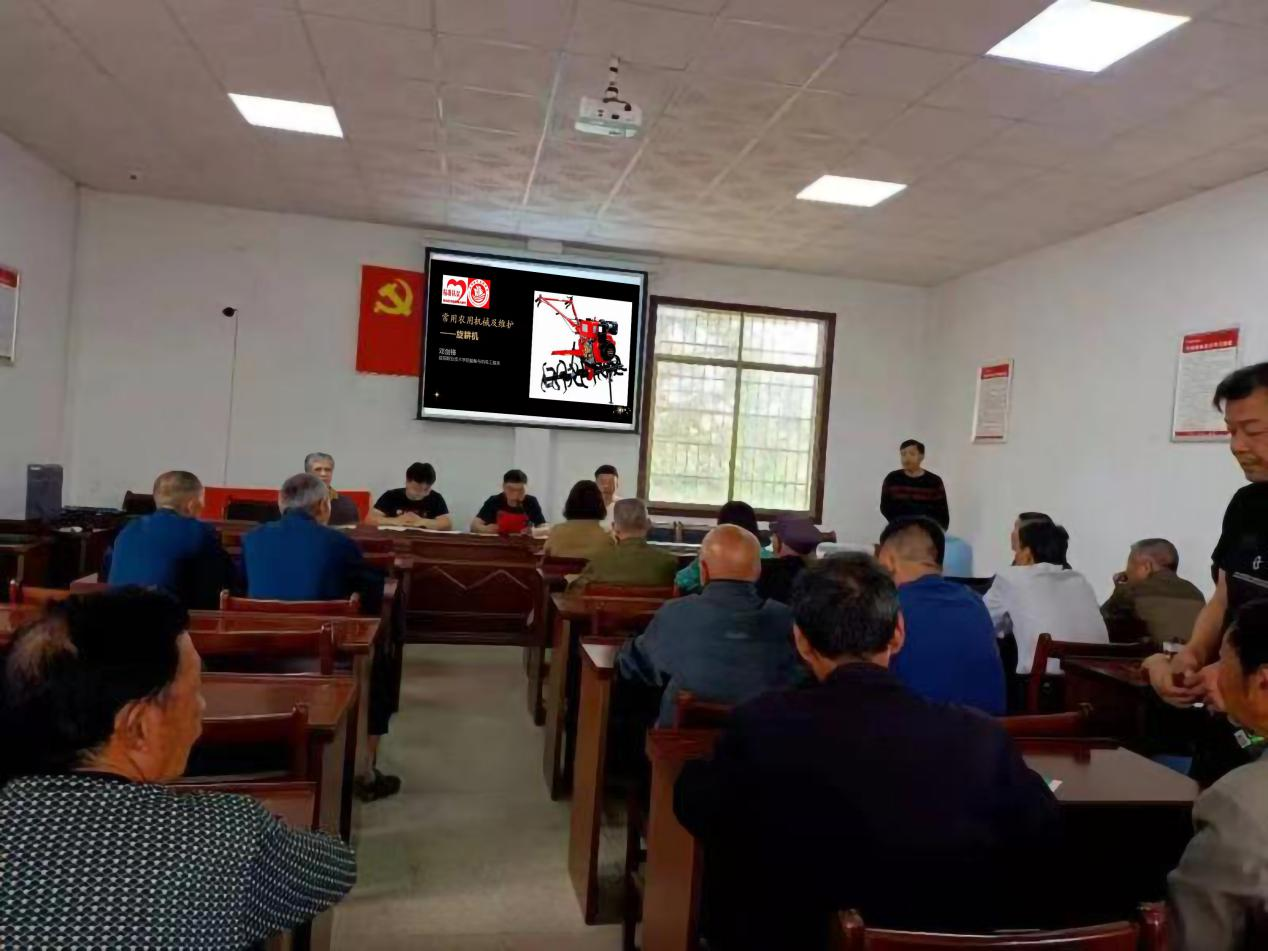 邓教授从旋耕机的构造、旋耕机的原理、旋耕机的类型、旋耕机的维护等方面进行讲解。邓教授以南方水田系列旋耕机IGL—150为例,通过动画、爆炸图、装配图等方式,充分展示大塘村村民使用的主力旋耕机构造、工作原理及日常维护保养,为村民更好使用旋耕机提供了技术支持,解决了村民使用旋耕机中的许多不明白的东西。参加培训的村民对邓教授的精彩授课表示由衷的感谢,希望学校今后能够为村民发家致富提供更多的技术指导。