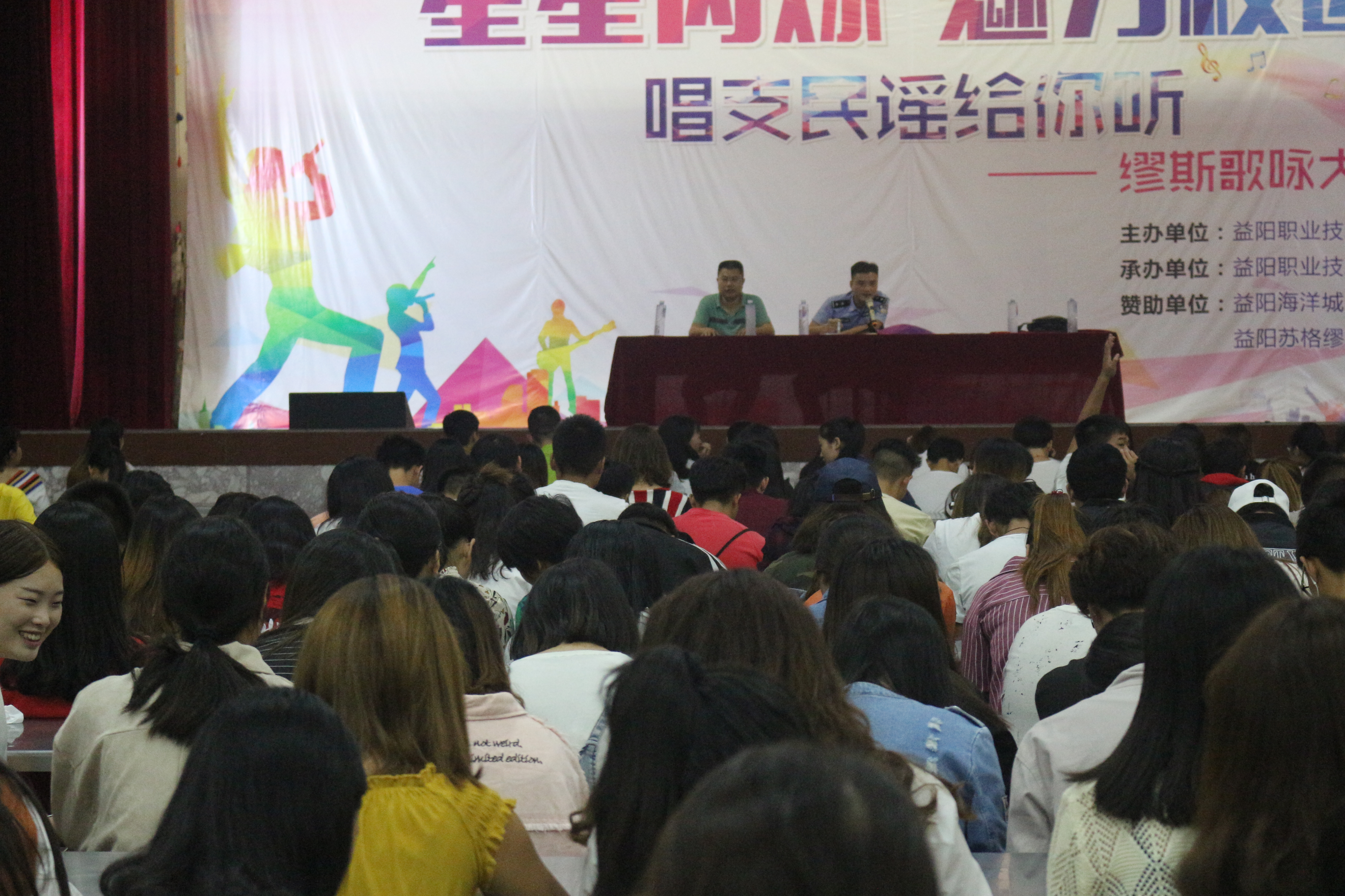 为增强学生安全意识,提高自我保护能力,创建平安校园,2017年9月21日19:00,经管系学生安全知识教育活动在一食堂成功举行,益阳市迎风桥镇派出所丁队长,学生处处长欧仕荣,以及大二大三全体同学参加。