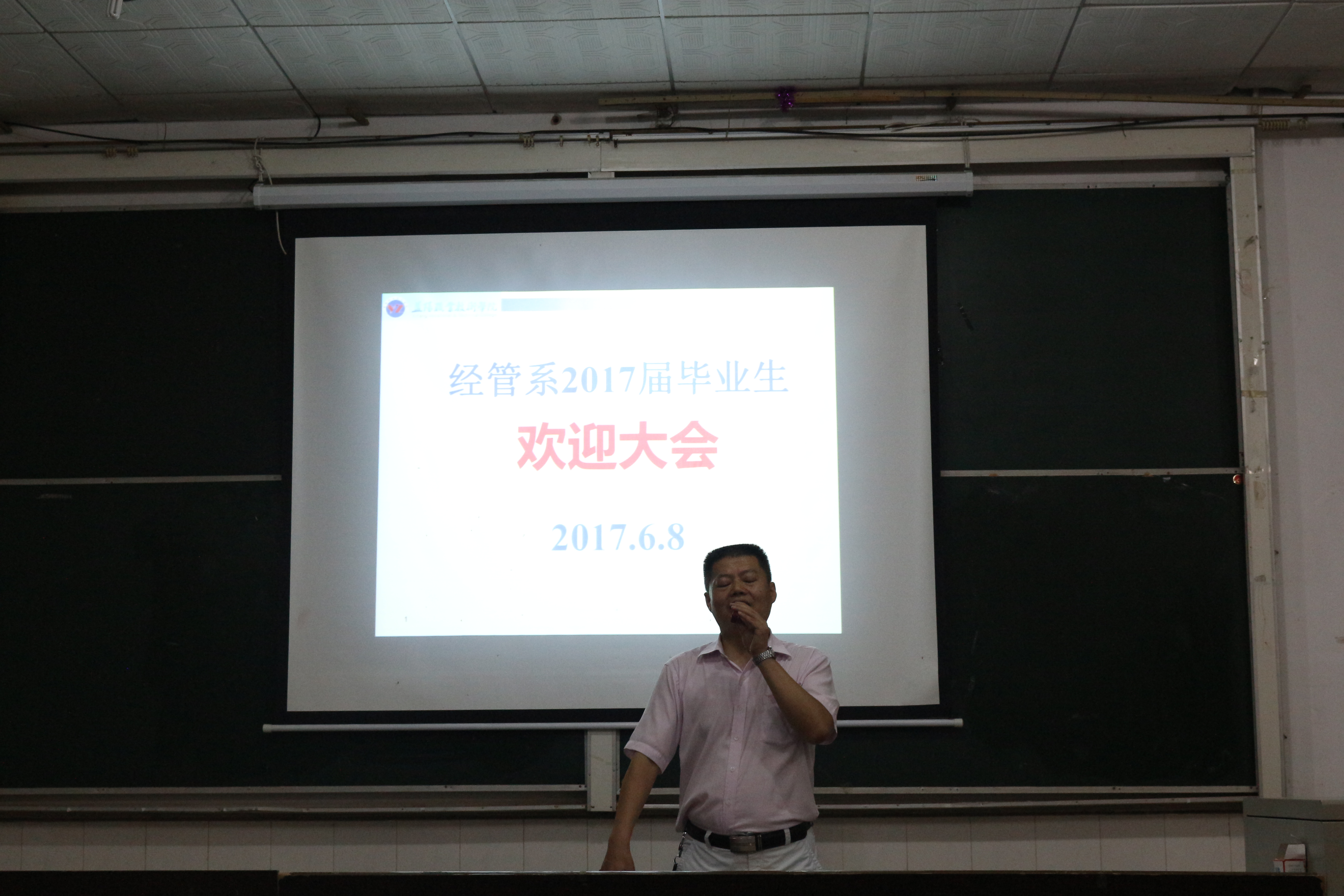 2017年6月8日17:30,经管系学2017届毕业生欢迎大会在2-102成功举行。经管系党总支书记唐超文、经管系主任吴自力、学工办主任刘慧予、学工办赵昭仪老师、大三各班辅导员及17届毕业生参加此次大会。大会由吴主任主持。