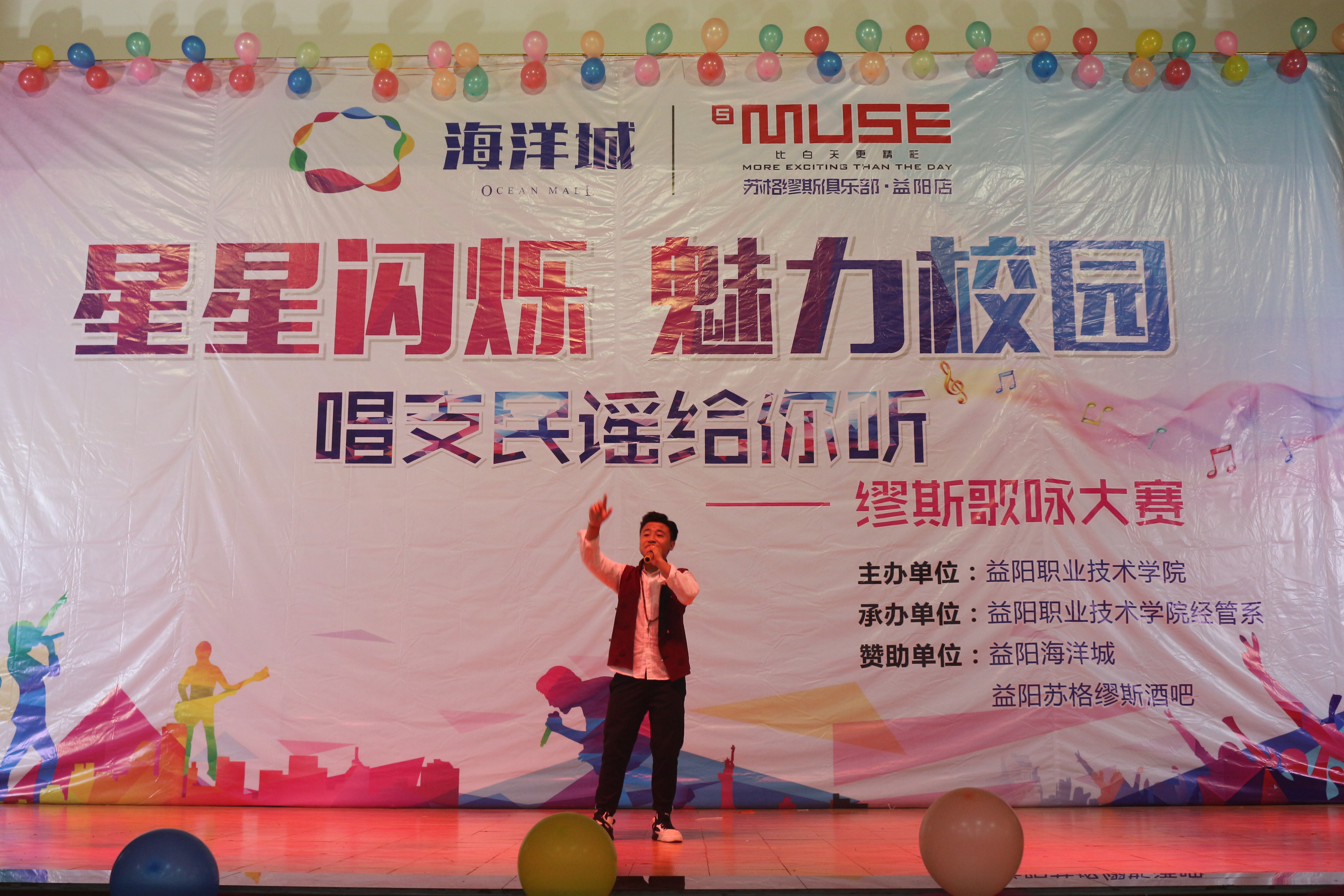 2017年6月19日益阳职业技术学院经管系缪斯杯歌咏大赛《唱只民谣给你听》在学院一食堂圆满落幕。出席本次比赛的嘉宾和领导有:海洋城刘先生、苏格缪斯孔先生、学院党委委员、副院长潘访华、学生处处长姚子凤、机电系主任蔡建文、经管系主任吴自力、经管系党总支书记唐超文、团委副书记蒋斌、经管系学工办全体老师,以及到场的各位老师和学院学生。特邀中职部孟慧老师、学生处贺燕姣老师、汽车系殷俊老师、中职部张嫔靓老师、基础课部罗景老师为本次活动评委。本次活动礼品及奖金由益阳海洋城和苏格缪斯俱乐部益阳店赞助。