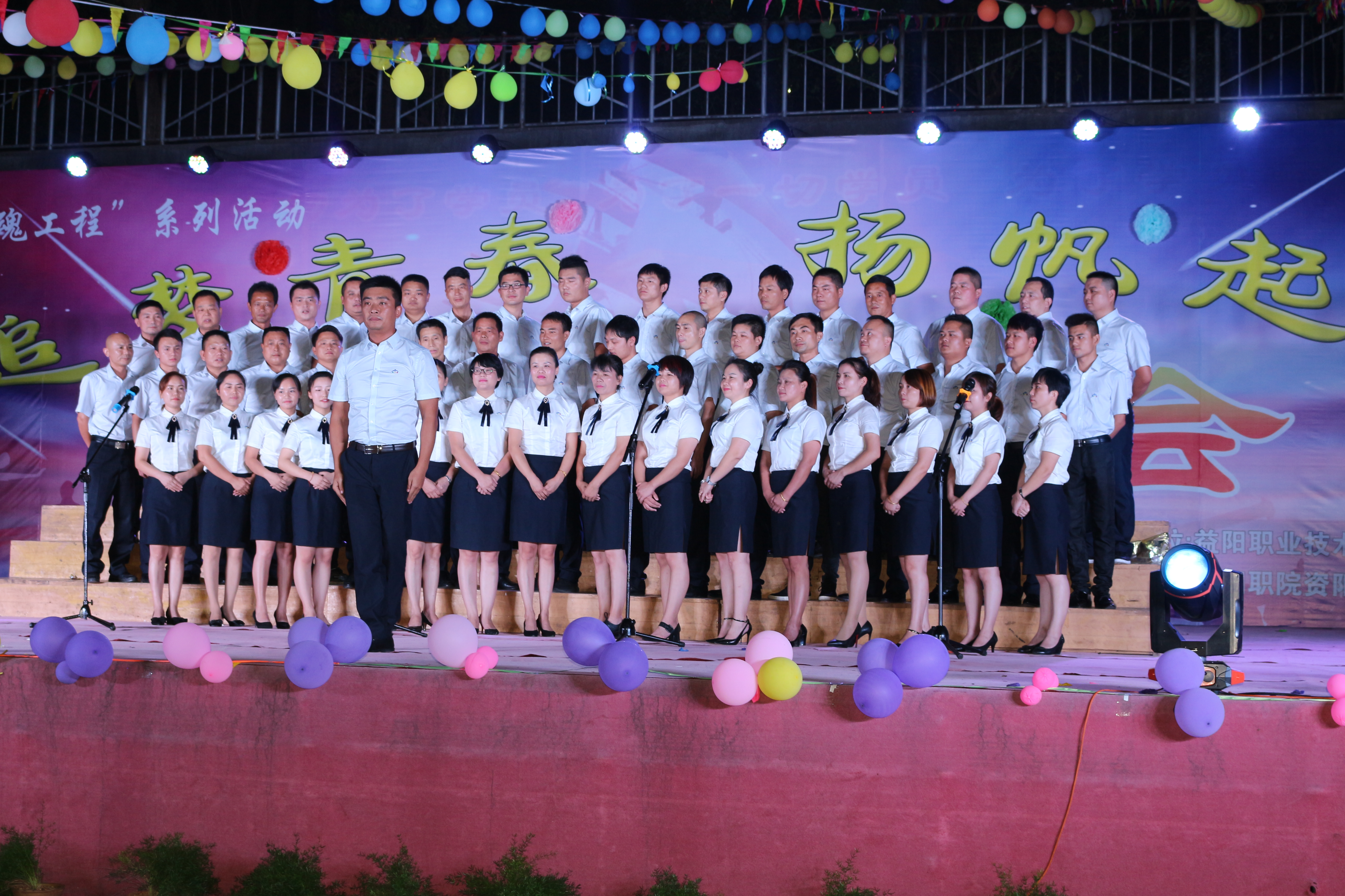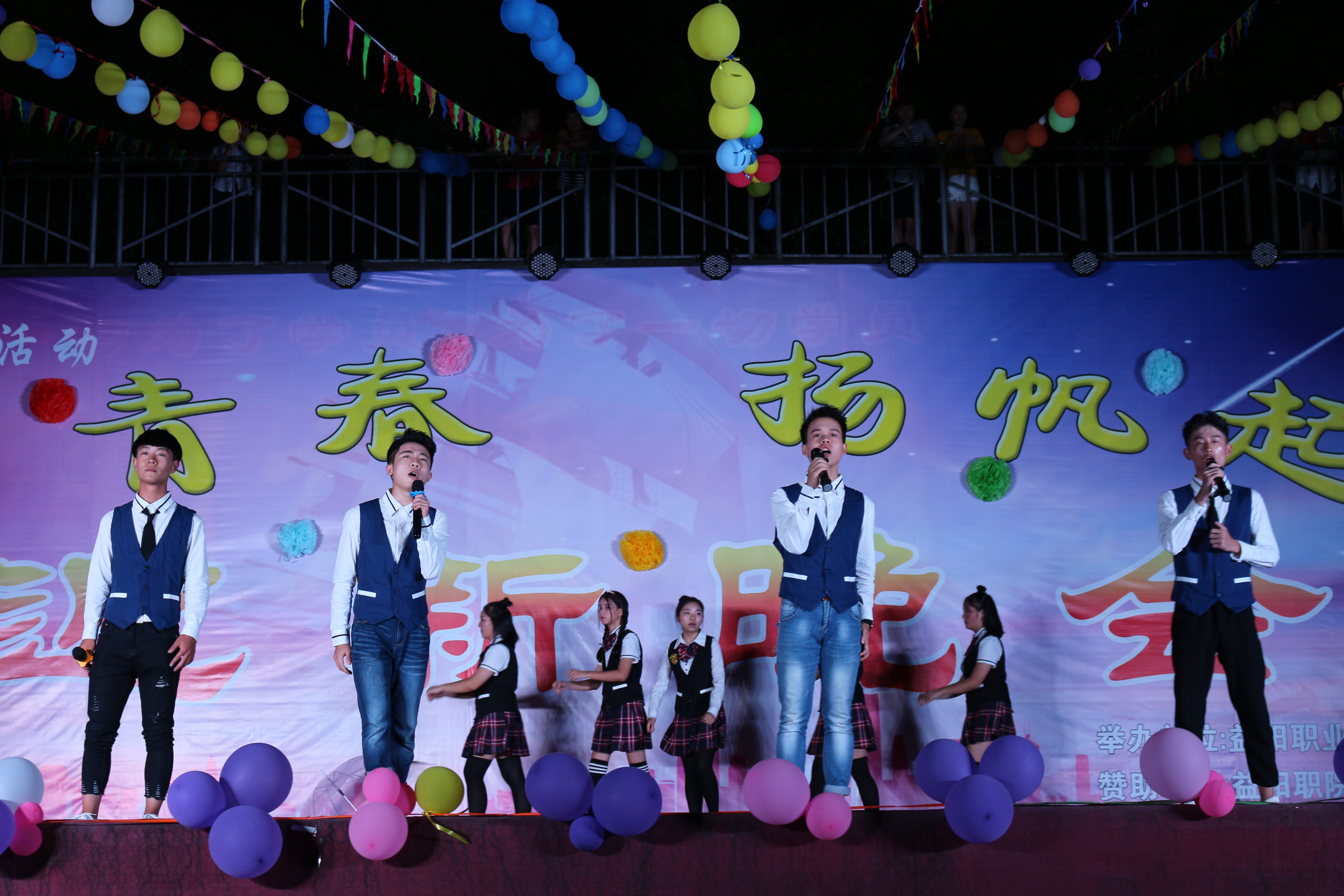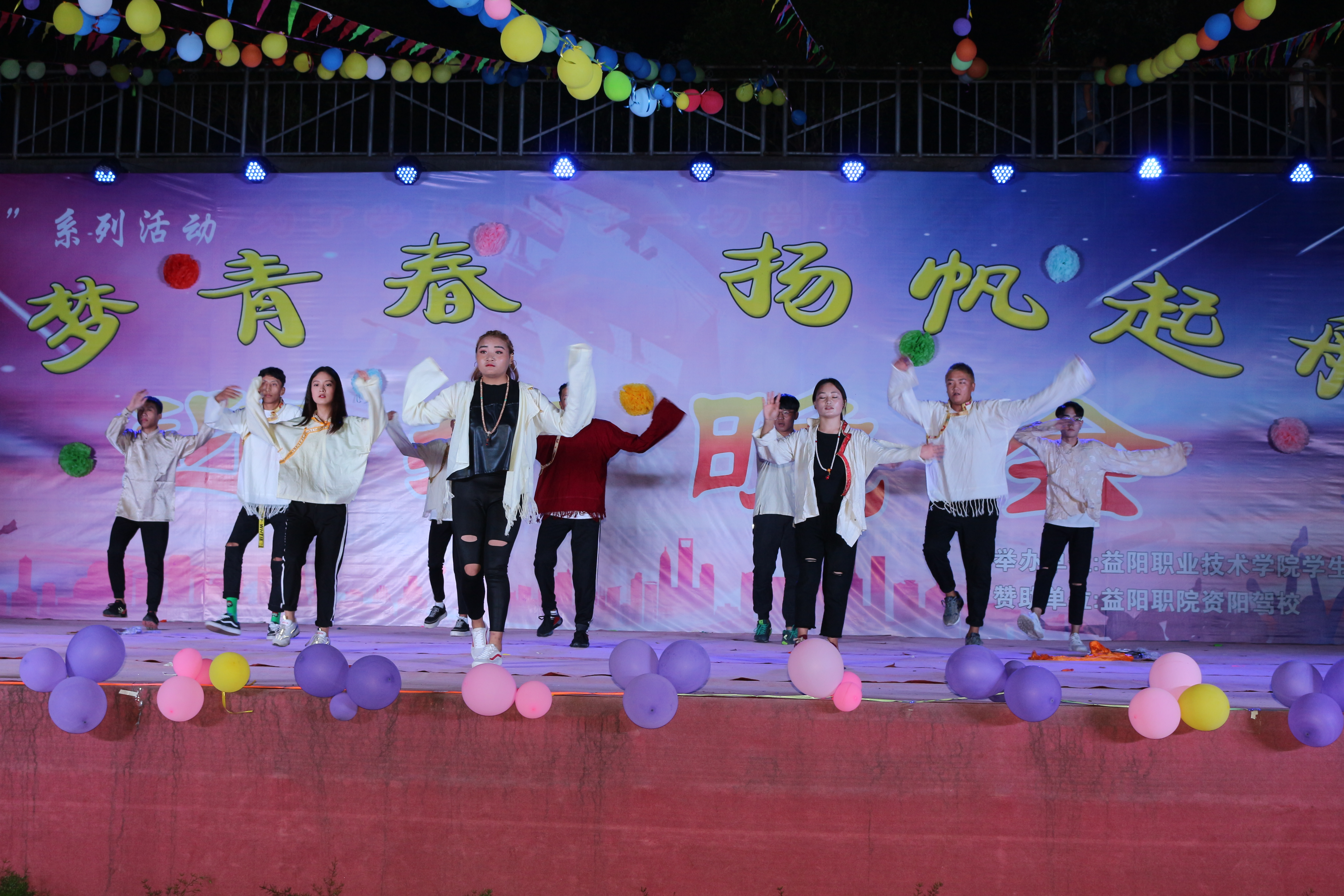 为了迎接17届新生的到来,展现我院学子风采,2017年9月13日由益阳职业技术学院学生处、团委举办的“追梦青春 扬帆起航”文艺晚会暨2017届迎新晚会在学校室外舞台(篮球场)举办,莅临本次晚会的领导及嘉宾有:益阳职业技术学院院长蔡建宇、副院长潘访华、副院长蔡超强、纪委书记周凤仙、原工会主席刘娟娟。本次晚会由徐超、饶红霞、陈事画、欧畅主持,随着潘副院长的致词,晚会正式拉开帷幕!