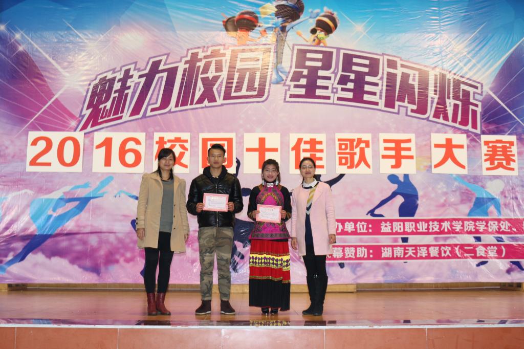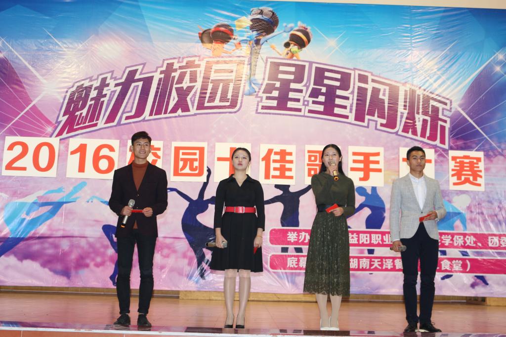 2016年12月12日晚上18:30,由院文娱外联部主办的益阳职业技术学院“2016校园十佳歌手”总决赛在学院一食堂拉开了帷幕。到场的评委老师有:蒋斌老师、罗微老师、贺艳姣老师、孟海老师、曹燕秋老师,参加本次活动的还有各班学生代表。