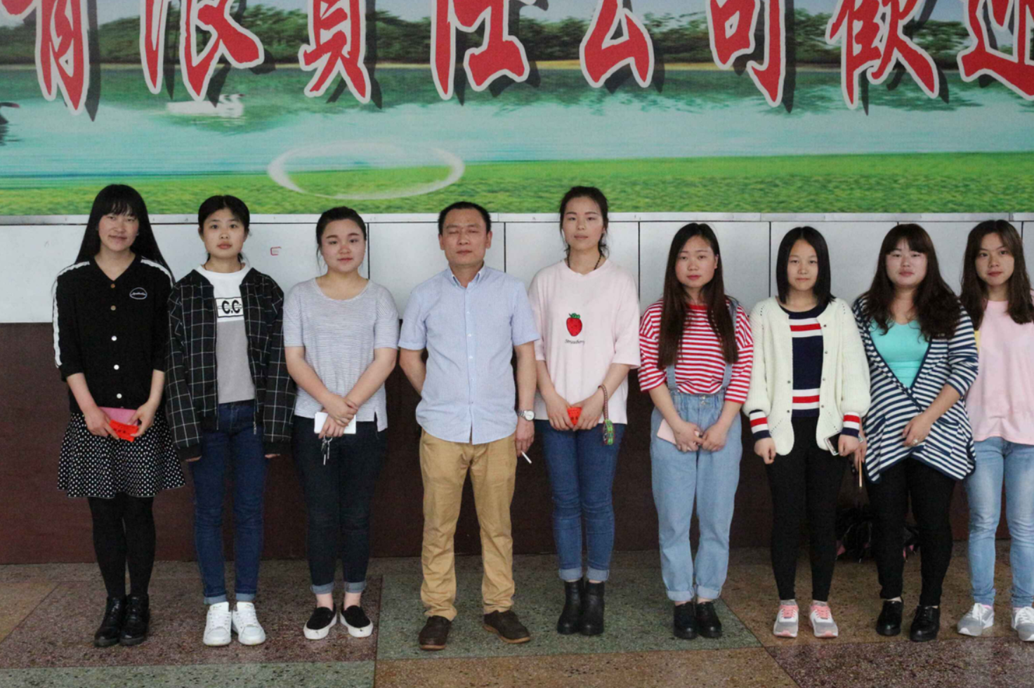 (图为我系艺术团部分成员与赞助商食堂老板的合影)