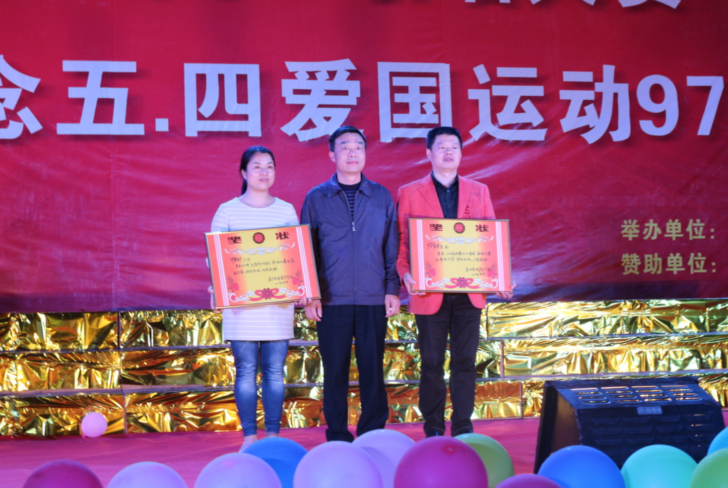 (图为我系在五四活动中 优秀组织奖的领奖时刻)