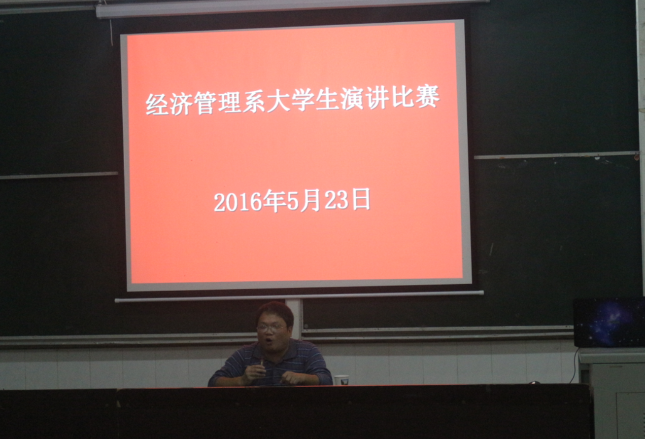 2016年5月23日晚七点,我系在2-102展开了以“祖国在我心中”为主题的经济管理系大学生演讲比赛。出席本次大赛的领导及老师有:学院副院长杨建华老师,学生保卫处欧仕荣老师,基础课部文小兵老师,经管系学工办主任刘慧予老师,张丽君老师、赵昭仪老师。