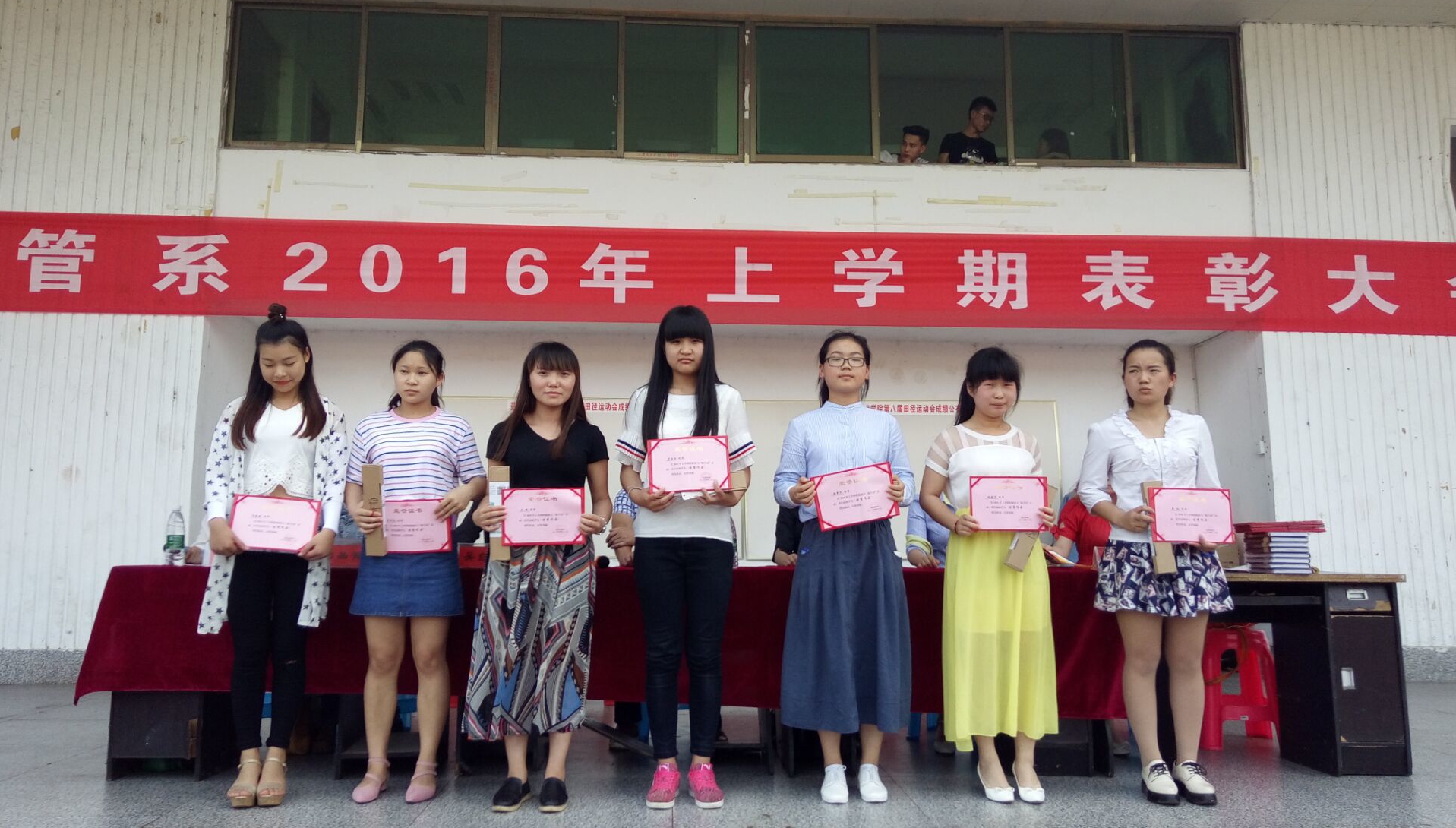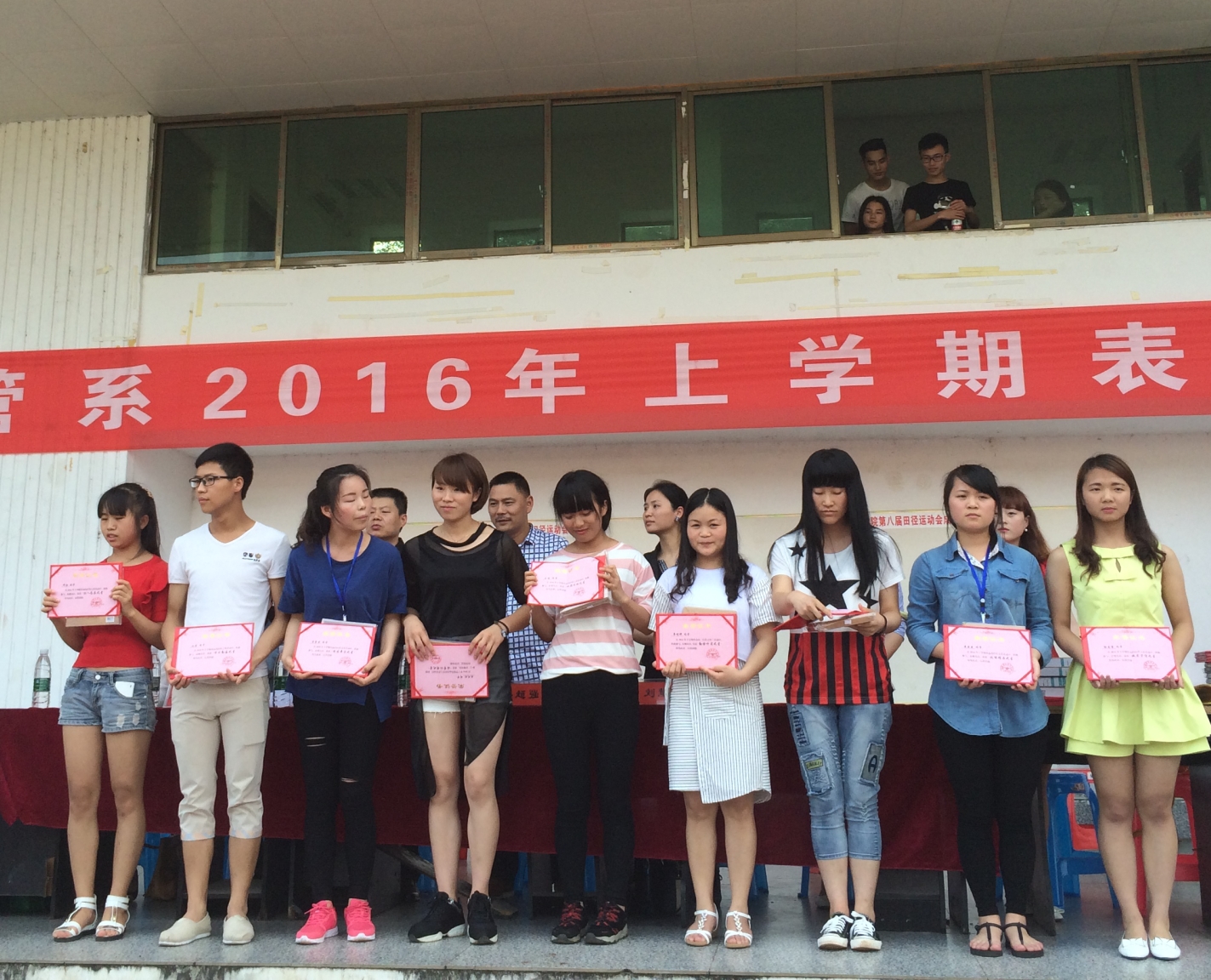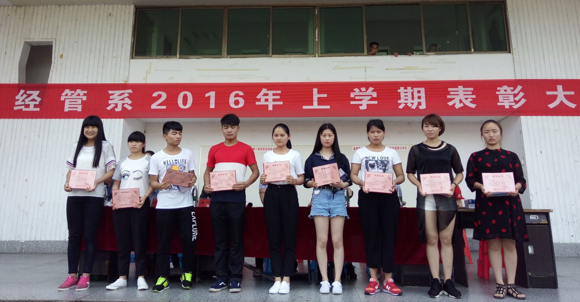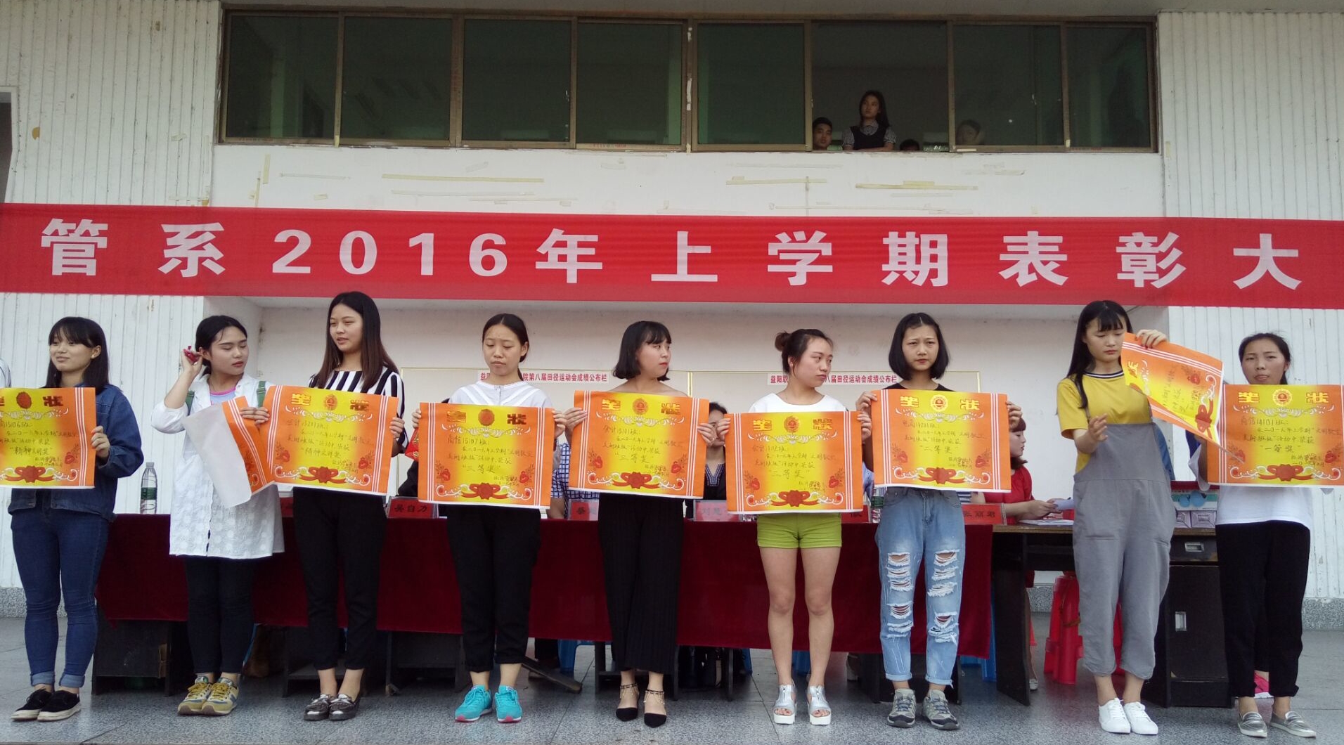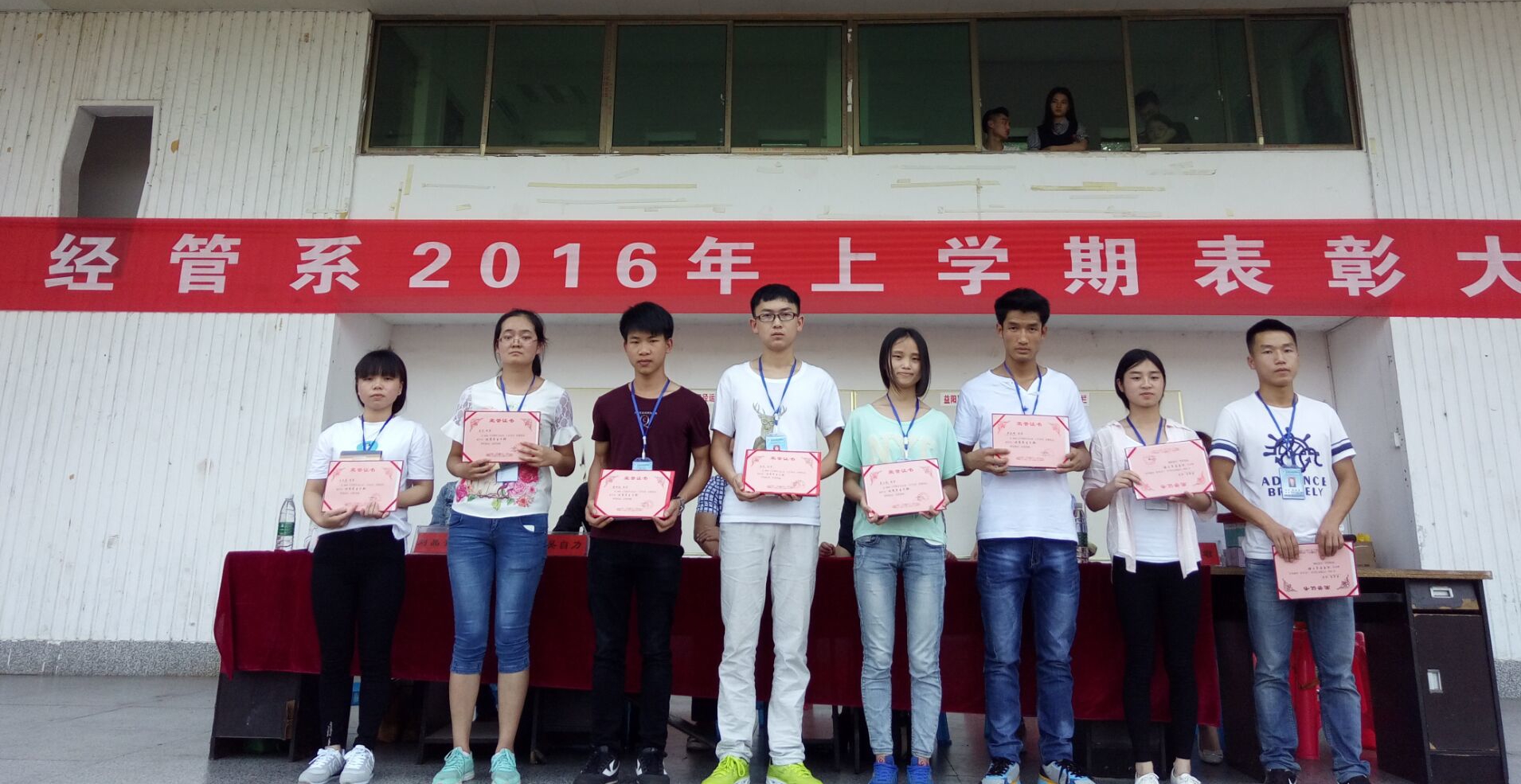 2016年5月30日16:00,我系在田径场召开了“经管系2016年上学期表彰大会”。旨在表彰先进,传承优良作风。出席此次大会的有:学院副院长蔡超强老师,系主任吴自力老师,学工办主任刘慧予老师,刘晶菁老师、赵昭仪老师、张丽君老师。