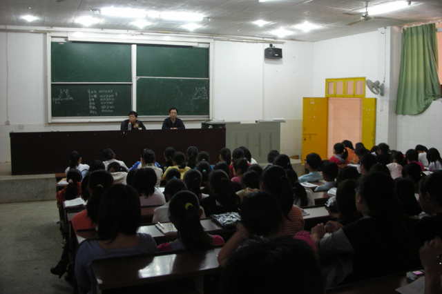 2008年10月16日,湖南师范大学教授来我院经贸系讲学;经贸系系主任何耀明、继续教育部部长催博文等老师参加此次讲座。