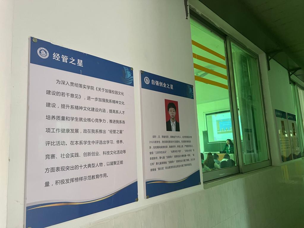 举办学院教学名师风采展示,挖掘选取优秀毕业生、技能之星、文艺之星、创业之星等“经管十星”典型事迹展示励志事迹和校园故事展示与教学楼,在广大师生中树立先进典型。