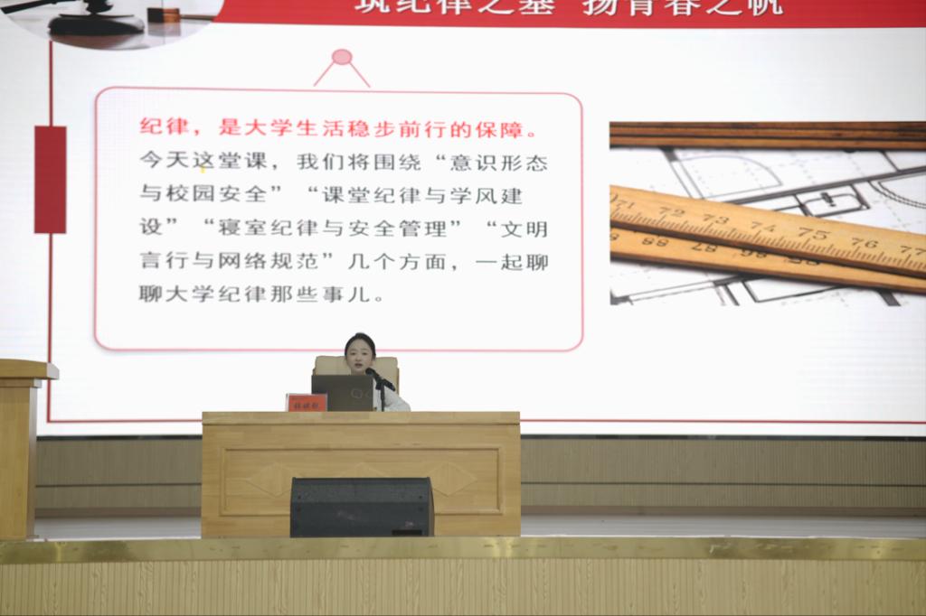 在纪律教育课堂上,张老师从大学生学习的“自主性”出发,强调大学的“自主”与“自由”是伴随着规则与纪律的成长过程,新生应当主动学习、遵守纪律、避免网络风险,强化对个人、集体和法律的责任感,遇到问题时及时与教师沟通。