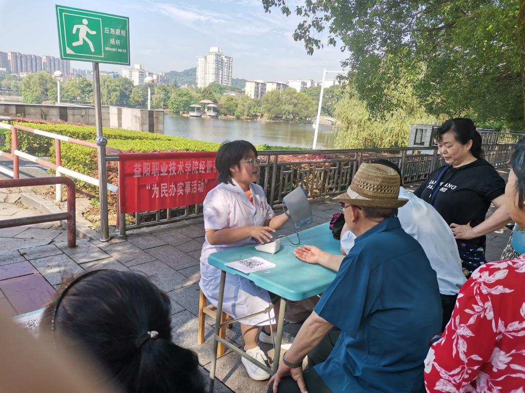 2021年6月8日,经管系老年服务管理专业学生代表在系部的支持下,由许艳主任带领前往秀峰公园北门开展“为民办实事”活动,免费为广大群众提供体征测量、健康咨询等相关服务。这次活动受到市民们的欢迎和普遍赞扬,收到良好的效果。