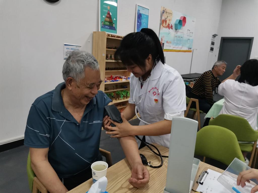 随后,老管班的学生党员对老同志们进行了细致的健康评估和健康咨询。