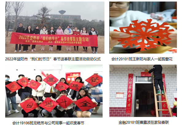 为大力弘扬和传承中华民族传统美德,丰富师生的精神文化生活,经管系特组织师生开展2022年“我们的节日”春节送春联主题活动,倡导师生进行春节文化创意设计活动,写对联、写福字、画年画、写贺卡等,同时开展送春联活动,将新春的祝福送给家乡的老人、亲朋,弘扬传统美德,树立文明风尚。寒假返乡的学生们纷纷响应,用自己的方式庆祝新年的到来,弘扬传统文化。
