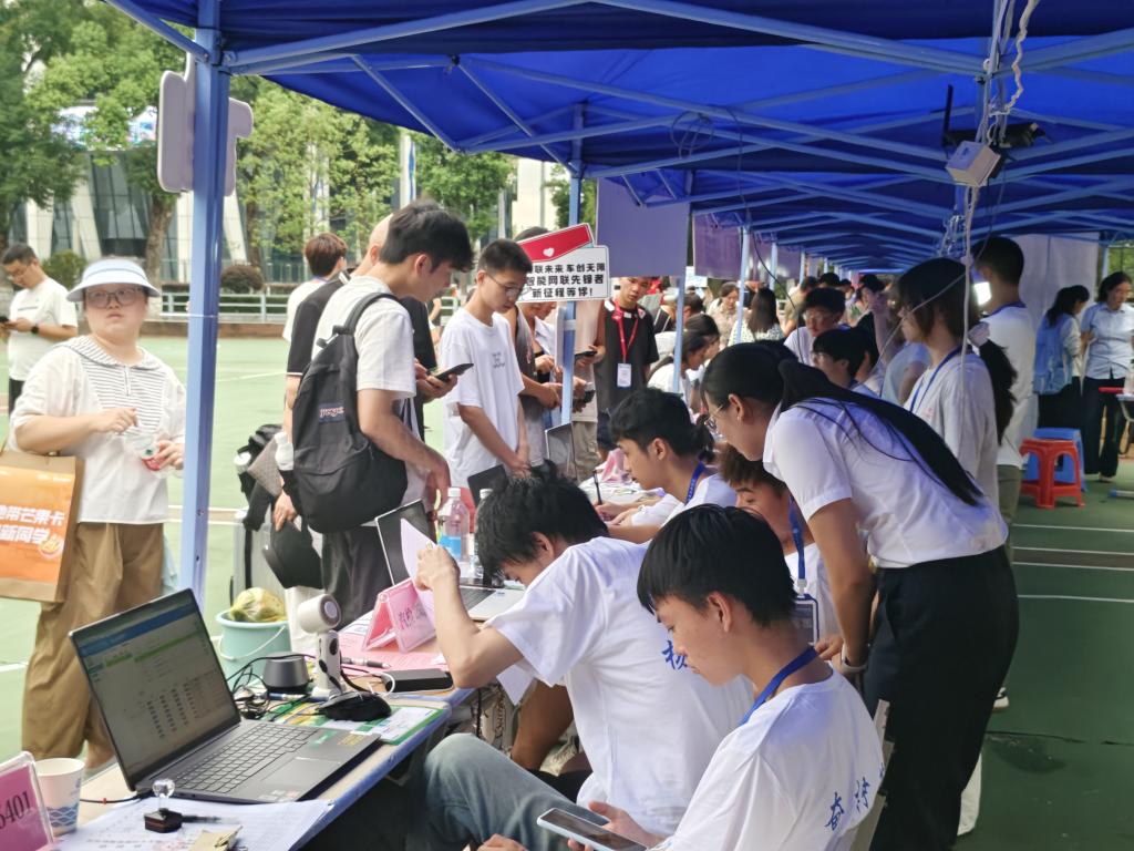 校内篮球场上,迎新服务区域划分清晰,标识醒目。作为迎新工作的核心力量,班助团队从清晨7点到夜晚10点坚守岗位,且为保障服务不中断,就餐时间段采用两人轮流值班模式,错峰用餐休息,确保新生无论何时抵达,都能及时完成信息登记、校园卡激活、住宿确认等流程,用持续在岗的责任心筑牢服务防线。