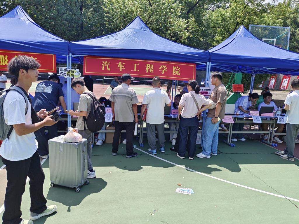 志愿者团队同样提前到位,不仅协助班助整理报到材料、维护现场秩序,还主动为新生及家长介绍校园布局、宿舍设施,引导前往住宿区域,用热情的态度和细致的讲解,快速拉近新生与校园的距离。现场新生们个个精神饱满,在工作人员的指引下有序办理手续,对即将开启的汽车工程专业学习与大学生活充满期待。