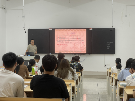 课堂上,林义波老师以资江风光带改造项目为切入点,通过图纸解析、案例对比,系统阐释风景园林“美观、实用、经济”的三大核心价值。互动环节中,林义波老师延伸讲解行业前沿理念,深化了新生对职业路径的认知。